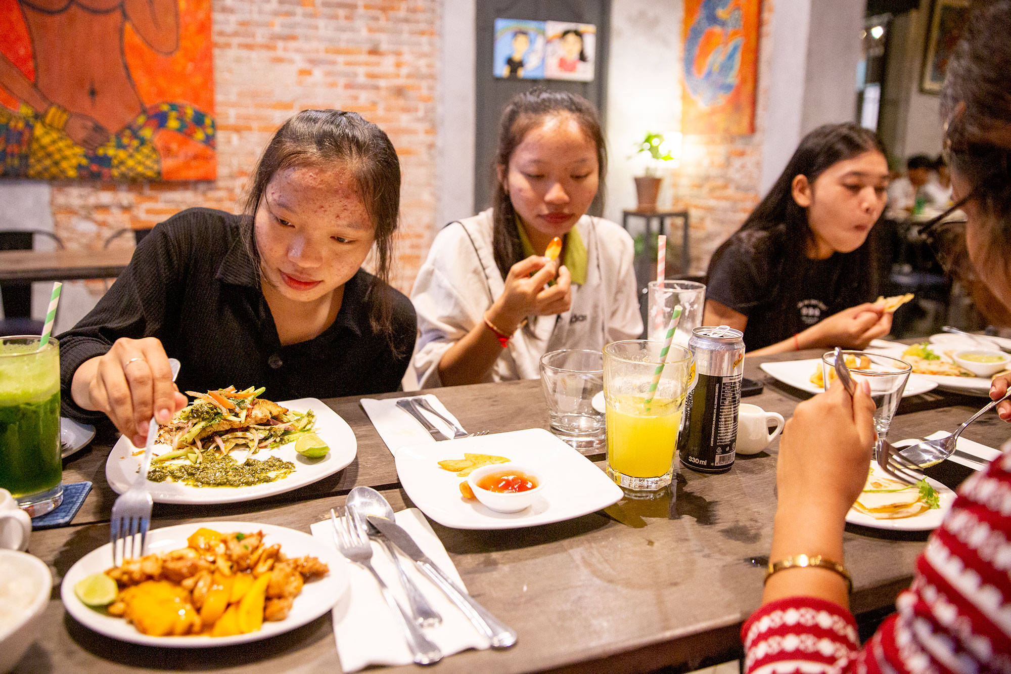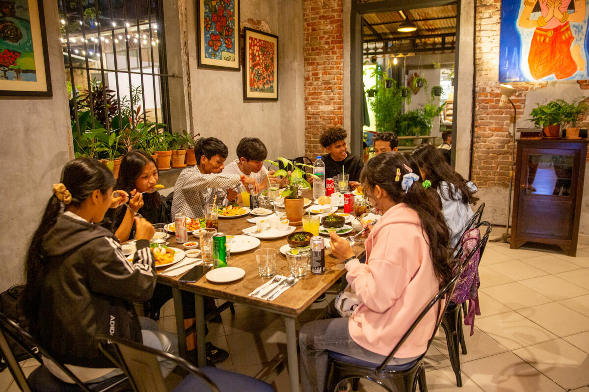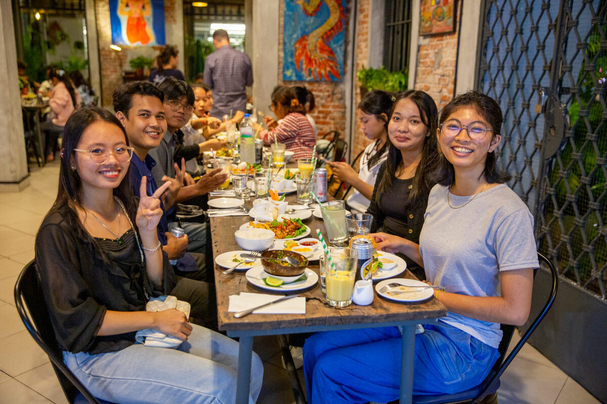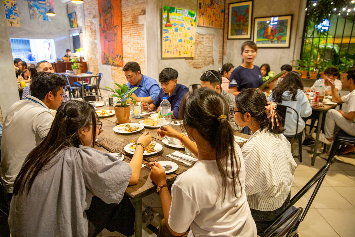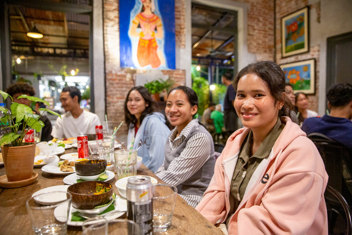 Das Abendessen fand in einem Restaurant von Friends International statt, das Ausbildungsplätze in Küche und Service anbietet. Ein passender Ort, der auch die Ausbildung junger Kambodschaner*innen ermöglicht.