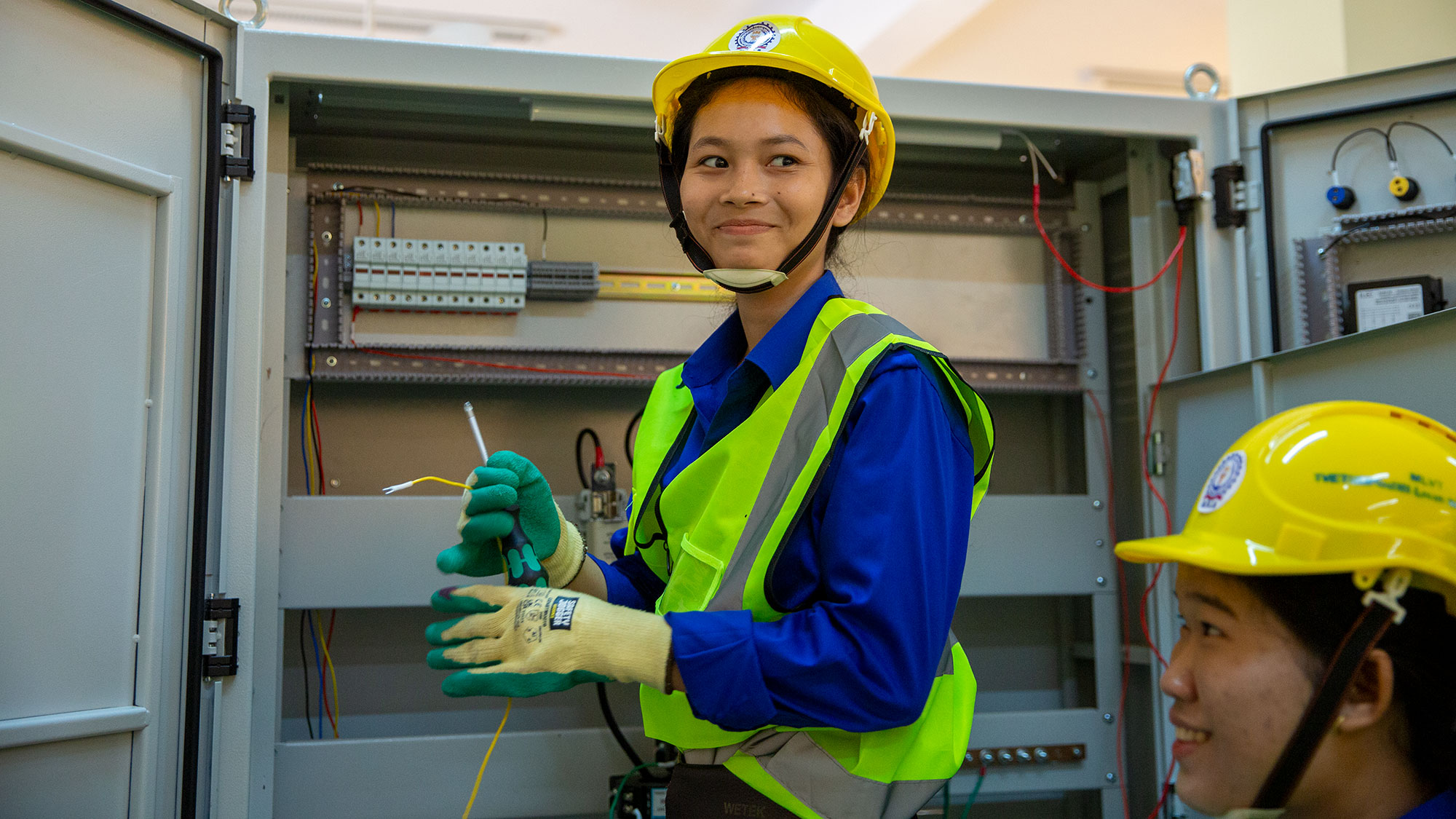 Das National Polytechnic Institute of Angkor (NPIA) in Siem Reap bietet zweijährige Berufsausbildungen in technischen Berufen an. Seit 2023 finanzieren wir Stipendien für Ausbildungen in Elektrotechnik, IT und Mechanik.