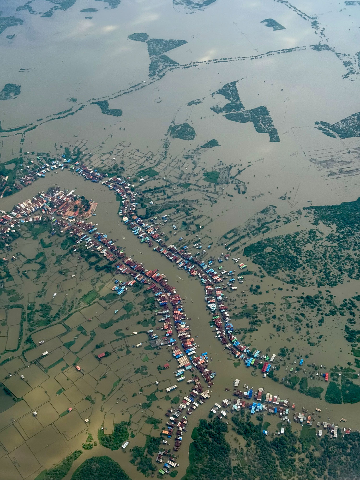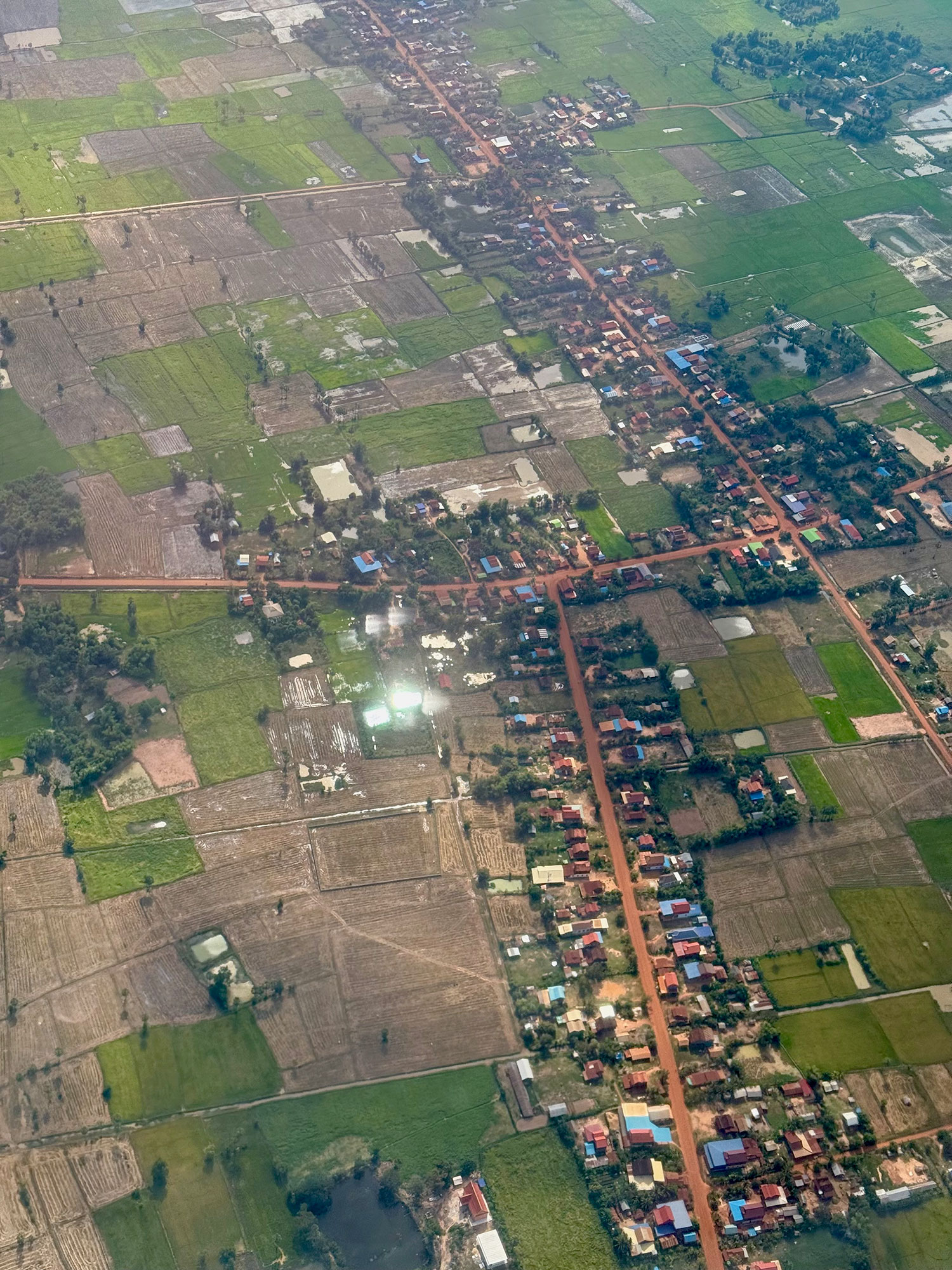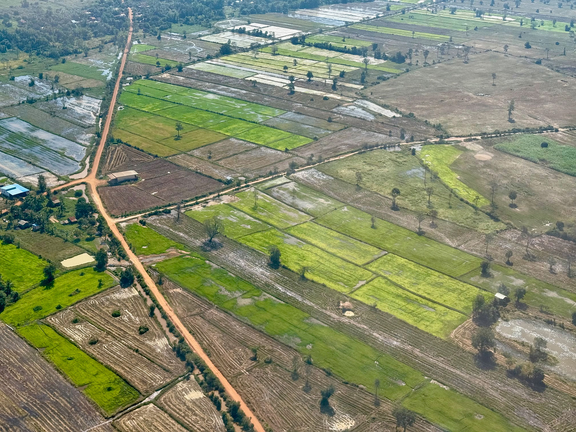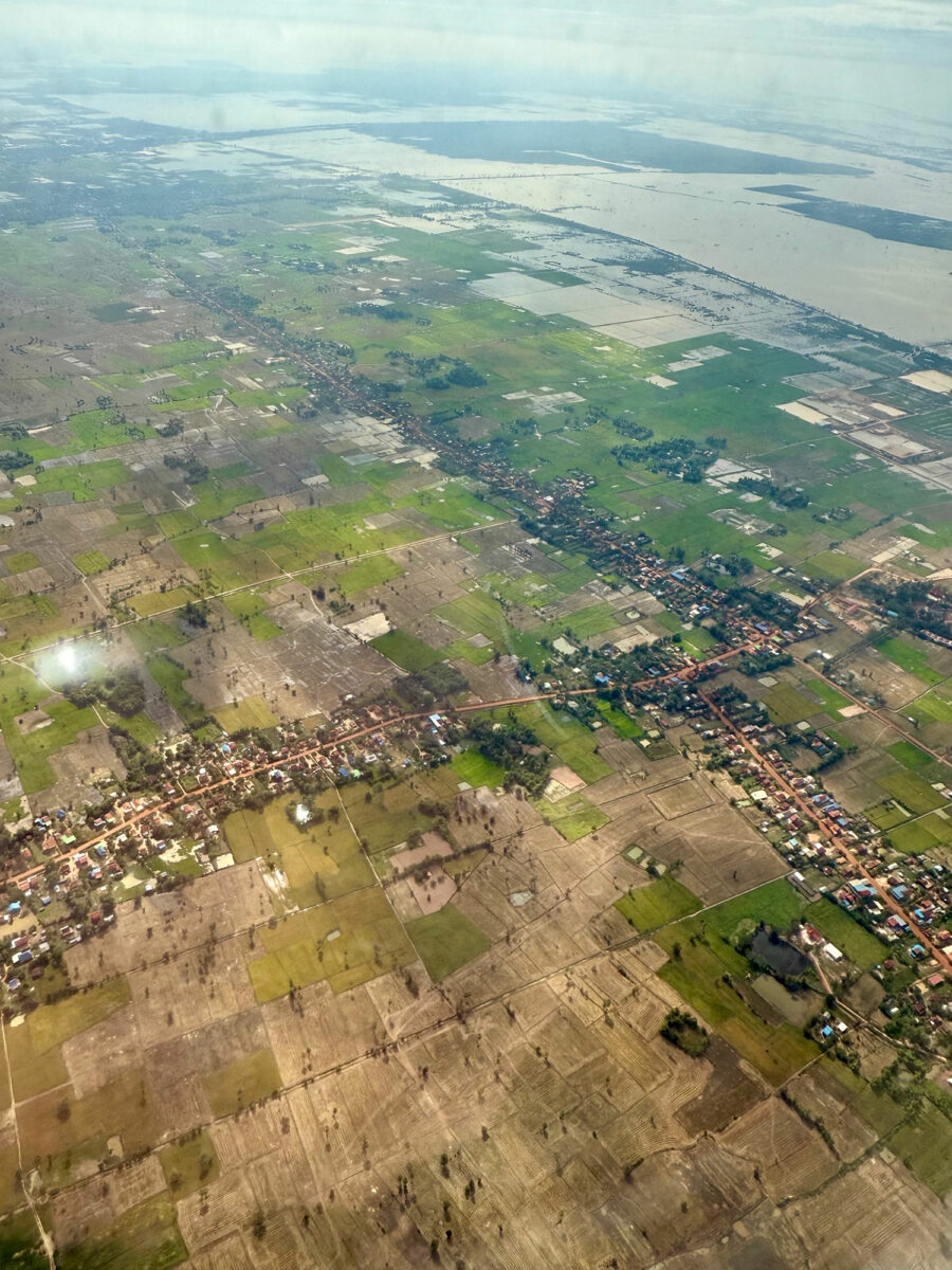 Der Blick aus dem Flugzeug fasziniert jedes Mal aufs Neue. Auch nach über 13 Jahren ist die Anreise über den prall gefüllten Tonle Sap See eindrücklich: Die gut erkennbaren schwimmenden Dörfer, die schmalen Häuserzeilen entlang der Strasse, wo Familien Verpflegung, Waren oder Benzin für Reisende anbieten, und die weiten Reisfelder, von denen viele zu dieser Jahreszeit bereits abgeerntet sind.