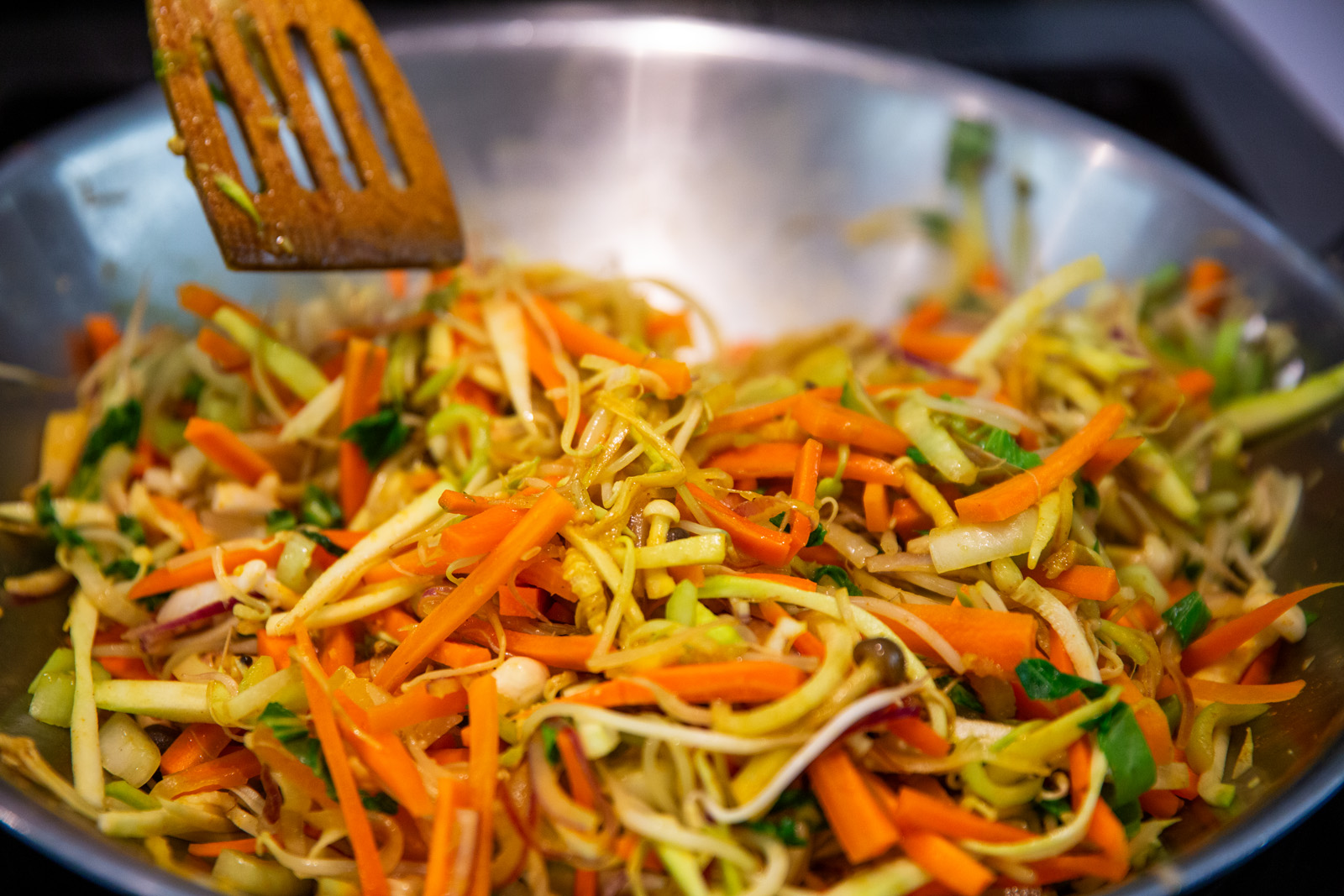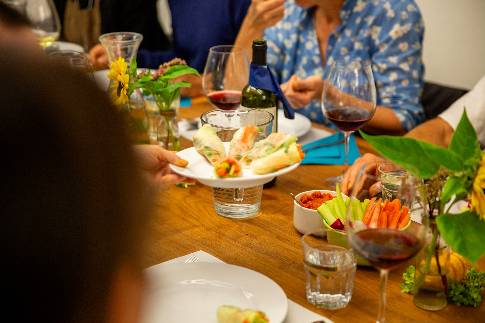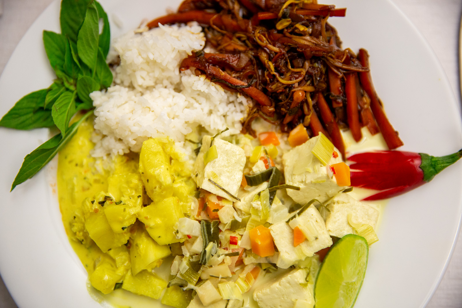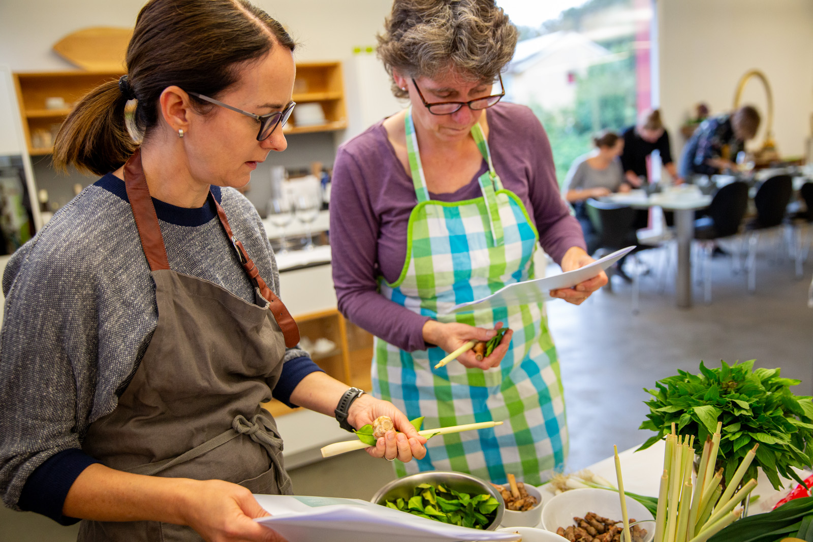 An diesem Abend kochten wir zusammen sieben verschiedene Gerichte, von verschiedenen Vorspeisen über unterschiedliche Hauptgänge bis zum feinen Dessert. Gleichzeitig lernten wir viel über die unterschiedlichen Zutaten und dachten wohl noch einige Tage danach an den kurzweiligen Abend, wenn wir unsere Kurkuma gefärbten Finger ansahen, die beim Erstellen der Curry Paste entstanden sind.