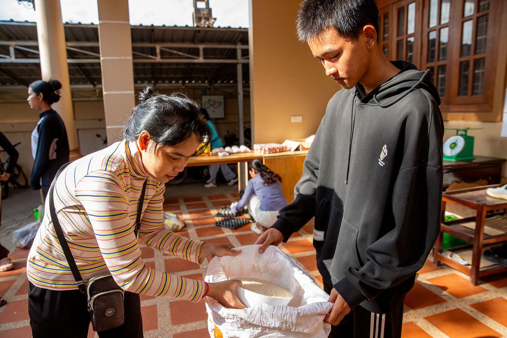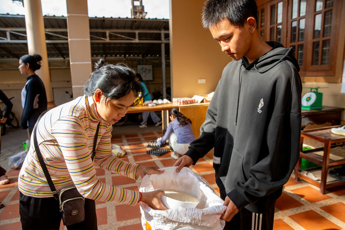 Auch in diesem Jahr durfte Claudia bei einer Lebensmittelabgabe unserer Food Bank in Siem Reap dabei sein. Seit über zehn Jahren unterstützen wir hier Schülerinnen und Schüler aus Familien, die zu Hause nicht über ausreichend Nahrung verfügen. Alle zwei Wochen holen die Jugendlichen oder ihre Angehörigen die Lebensmittel ab, die ihnen helfen, den Alltag zu bewältigen und den Schulbesuch zu sichern.