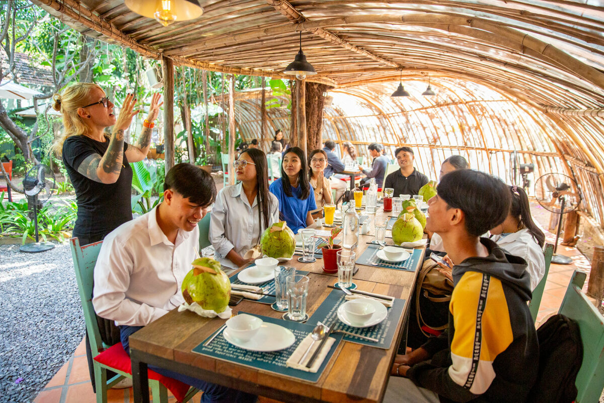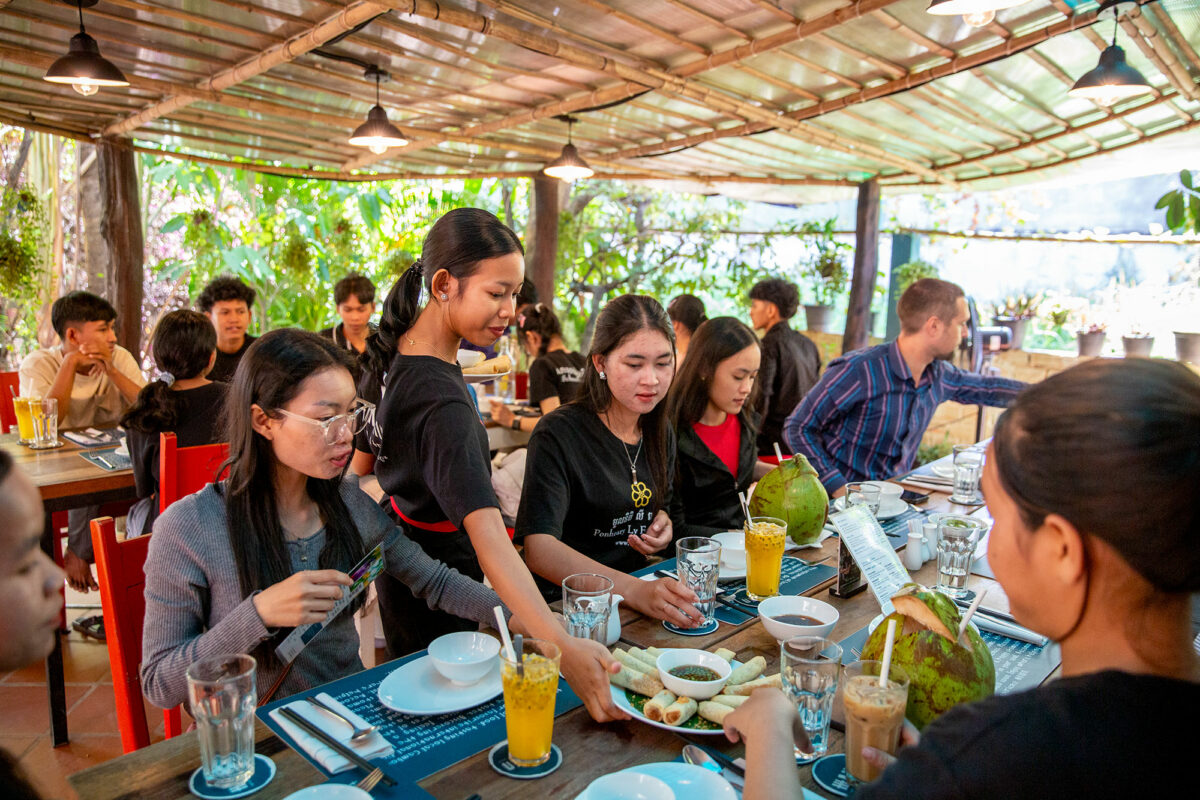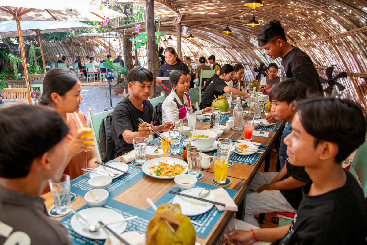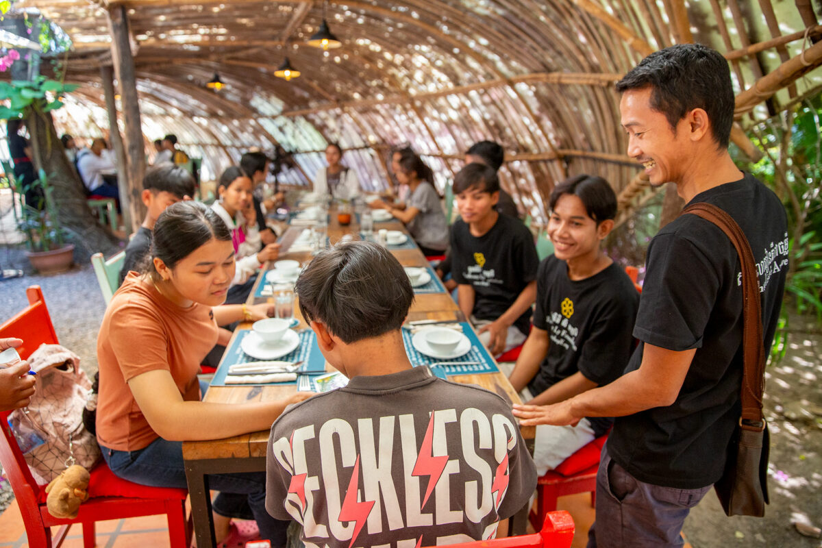 Natürlich luden wir auch die Jugendlichen, die in Siem Reap studieren oder eine Berufsausbildung absolvieren, zu einem gemeinsamen Mittagessen ein. Dieses besondere Treffen fand bei unseren Freunden im HAVEN statt, einem Ausbildungsrestaurant in Siem Reap. Hier erhalten junge Erwachsene aus benachteiligten Verhältnissen eine praxisnahe Ausbildung in Küche und Service und werden auf einen selbstständigen Einstieg ins Berufsleben vorbereitet.