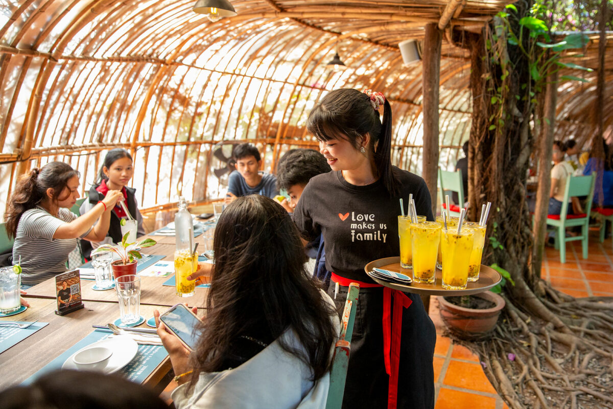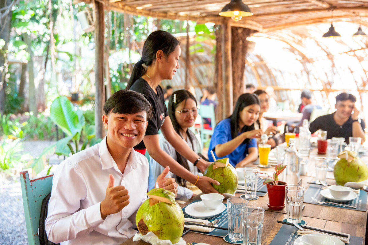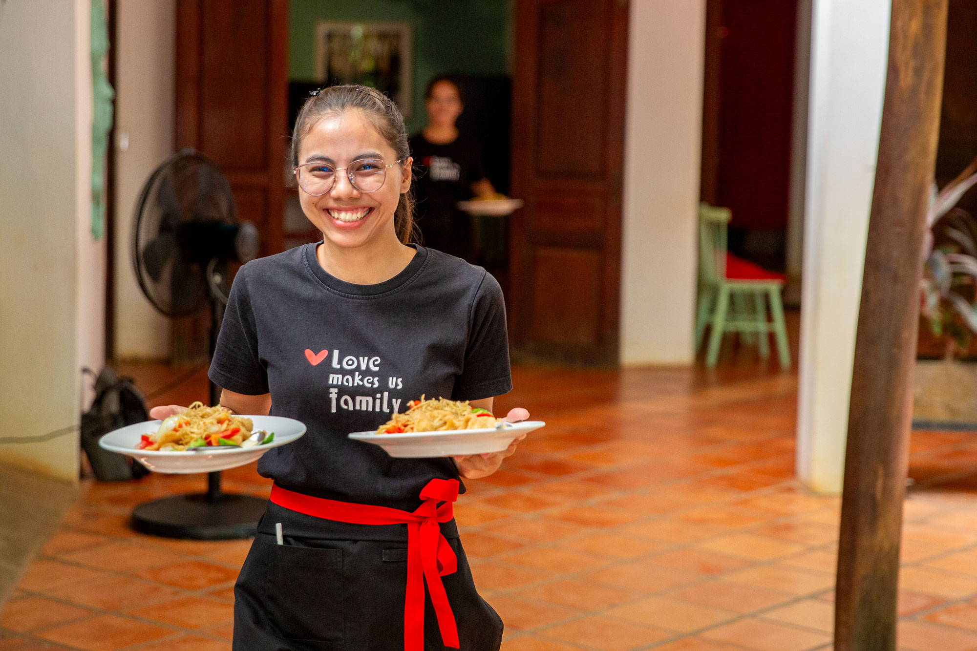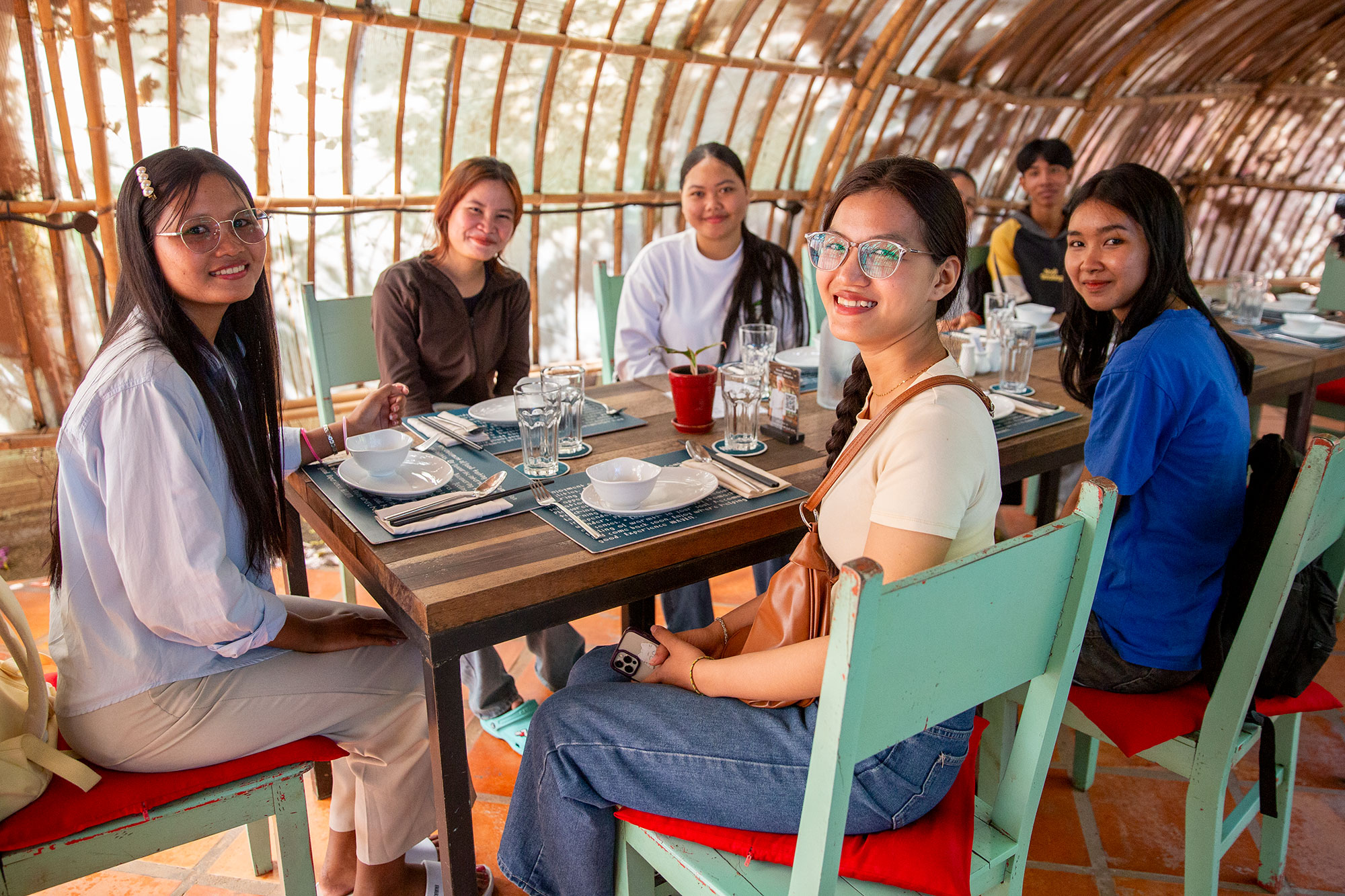 Natürlich luden wir auch die Jugendlichen, die in Siem Reap studieren oder eine Berufsausbildung absolvieren, zu einem gemeinsamen Mittagessen ein. Dieses besondere Treffen fand bei unseren Freunden im HAVEN statt, einem Ausbildungsrestaurant in Siem Reap. Hier erhalten junge Erwachsene aus benachteiligten Verhältnissen eine praxisnahe Ausbildung in Küche und Service und werden auf einen selbstständigen Einstieg ins Berufsleben vorbereitet.