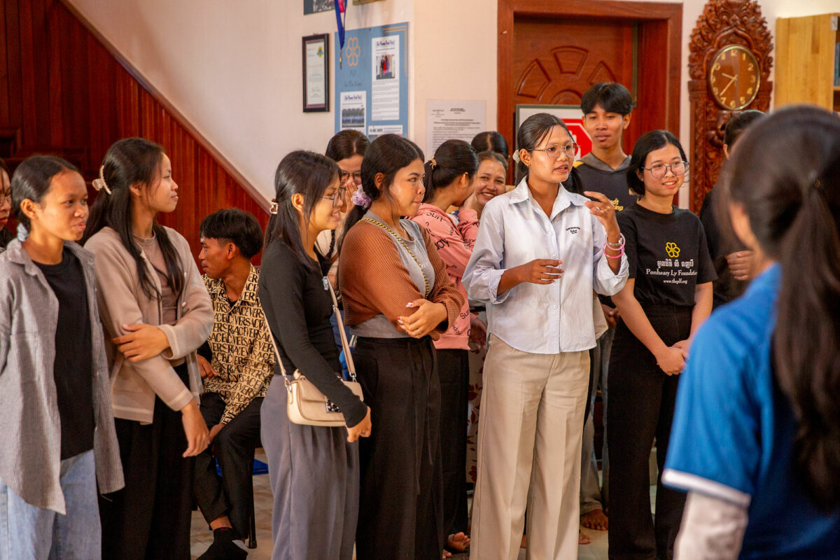 Während im ersten Stock des Siem Reap Learning Centers der Workshop zum Problemlösungsprozess stattfand, trafen sich im Parterre die Jugendlichen, die sich bereits in einer Ausbildung befinden. Darunter waren auch viele neue Gesichter, die erst kürzlich ihr Stipendium erhalten haben.