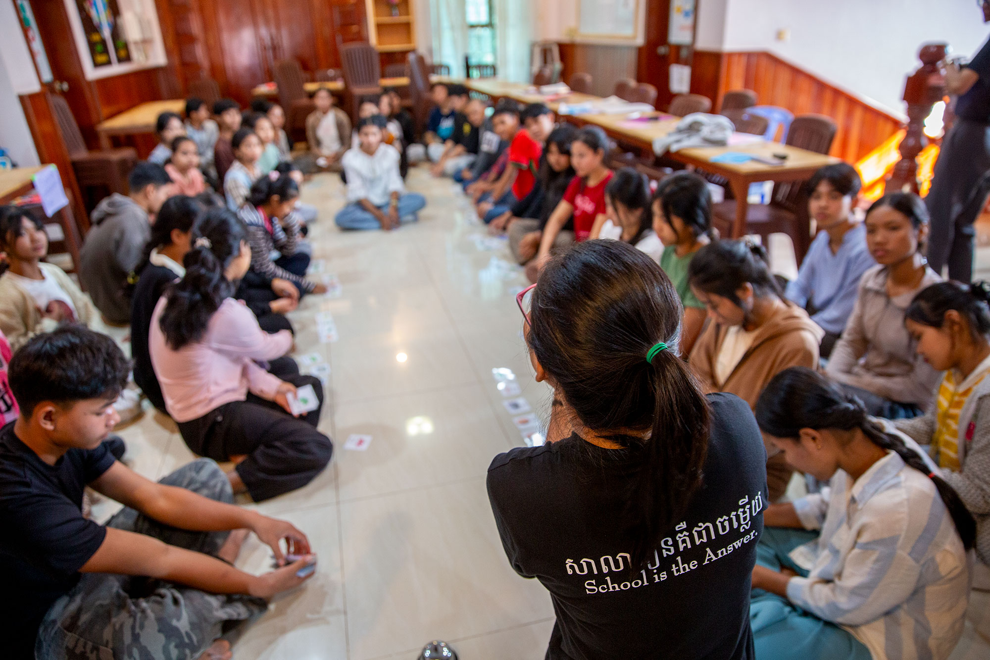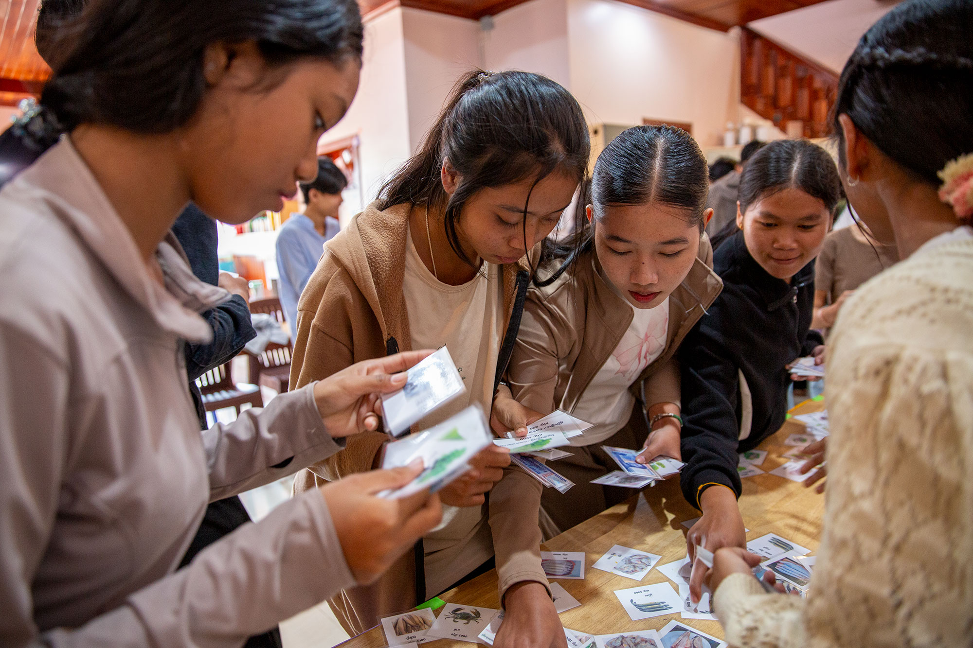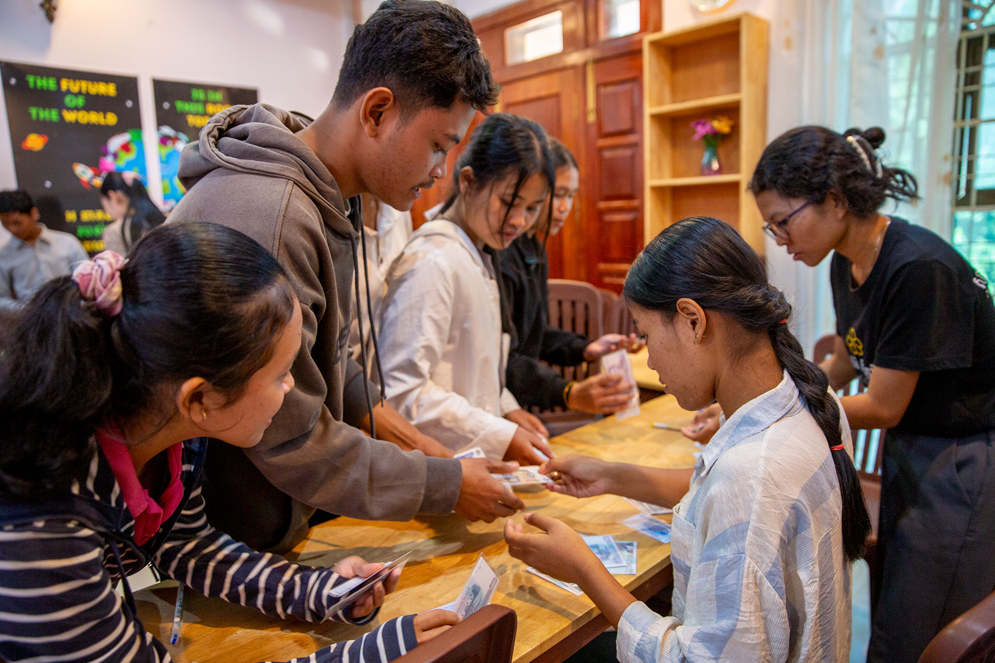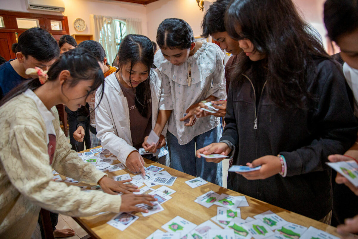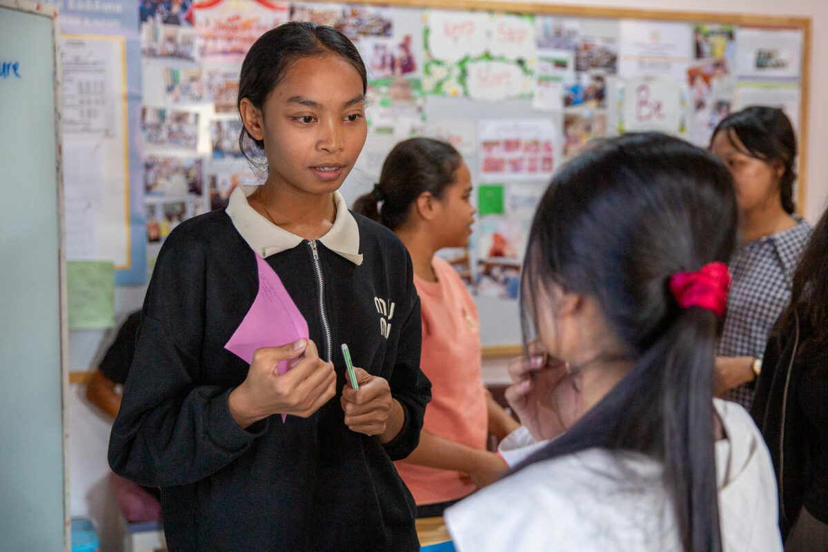 Rund 40 Schülerinnen und Schüler der 12. Klasse nahmen heute am Workshop von Vannak und Kao Ay teil. Gemeinsam diskutierten sie den Unterschied zwischen „etwas wollen“ und „etwas wirklich brauchen“ und sammelten Beispiele dafür, was sie im Alltag kostenlos nutzen können. Ein Aha-Moment entstand, als Vannak und Kao Ay vorrechneten, wie viel sich mit kleinen, regelmässigen Sparbeträgen über Monate und Jahre hinweg ansammeln kann.